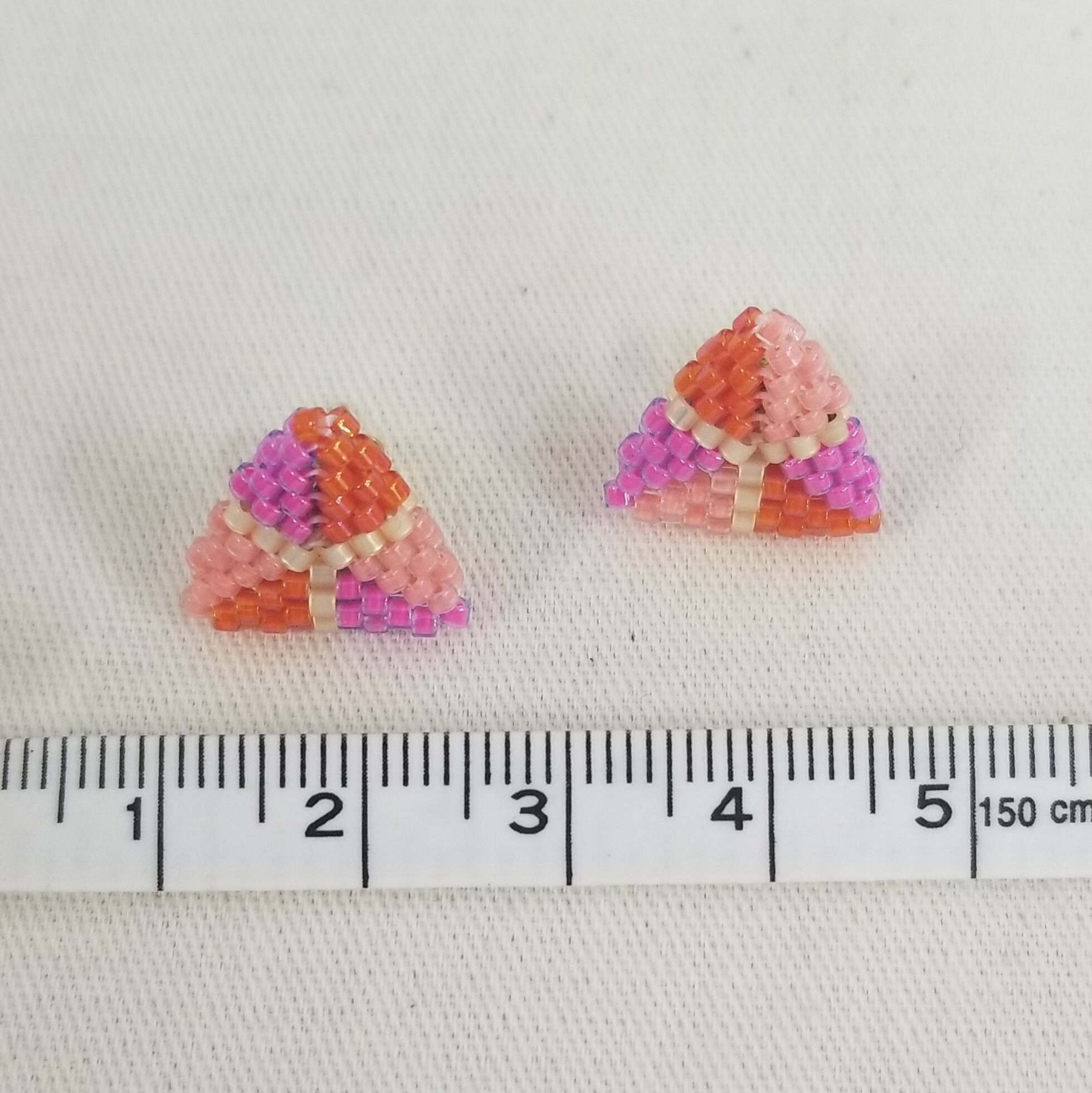 立体編みで作ったさんかくピアスです。小さめなのでさり気なく付けられます。