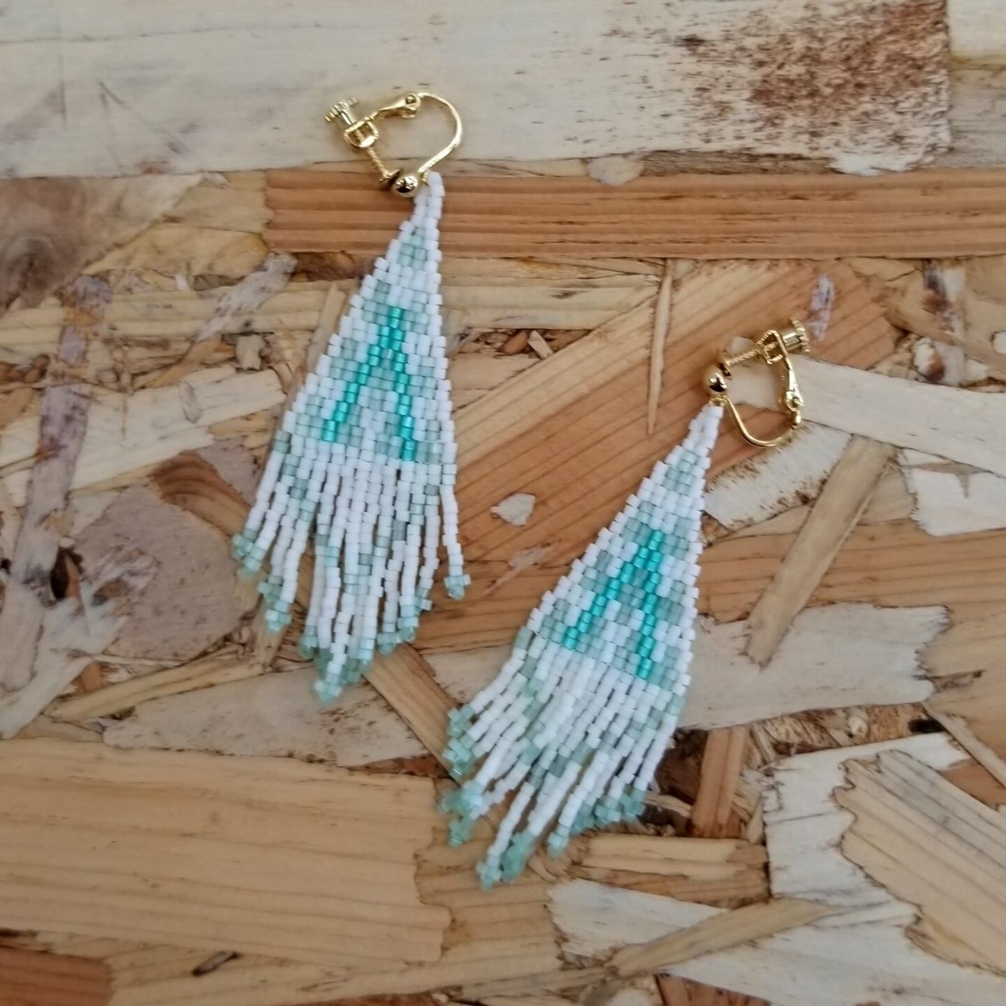 耳元でフリンジが揺れるイヤリングです。ミント好きだけじゃなくてクリームソーダが好きな人にも良いかもしれません。