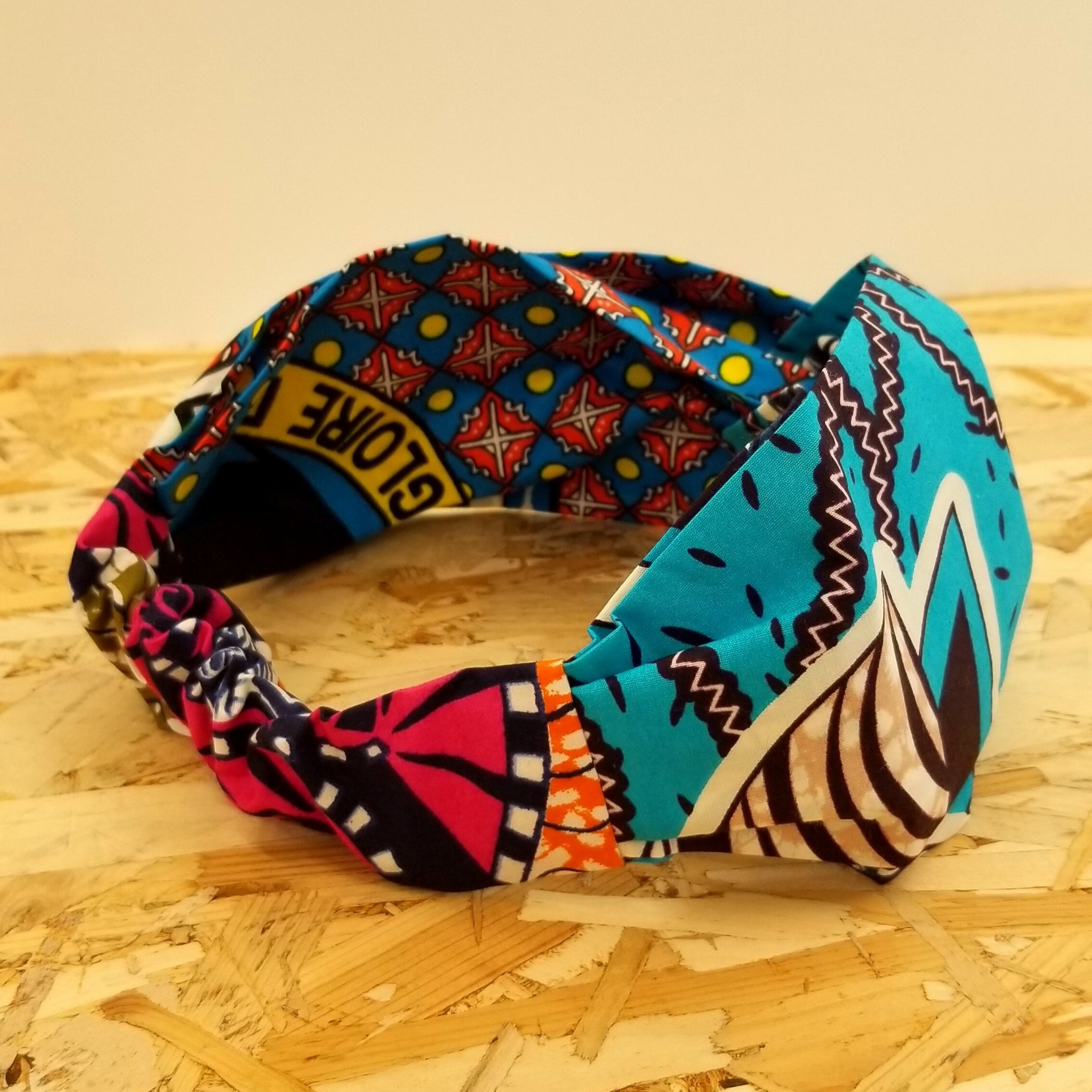 アフリカンバティックの柄を組み合わせて作ったカチュームです。
