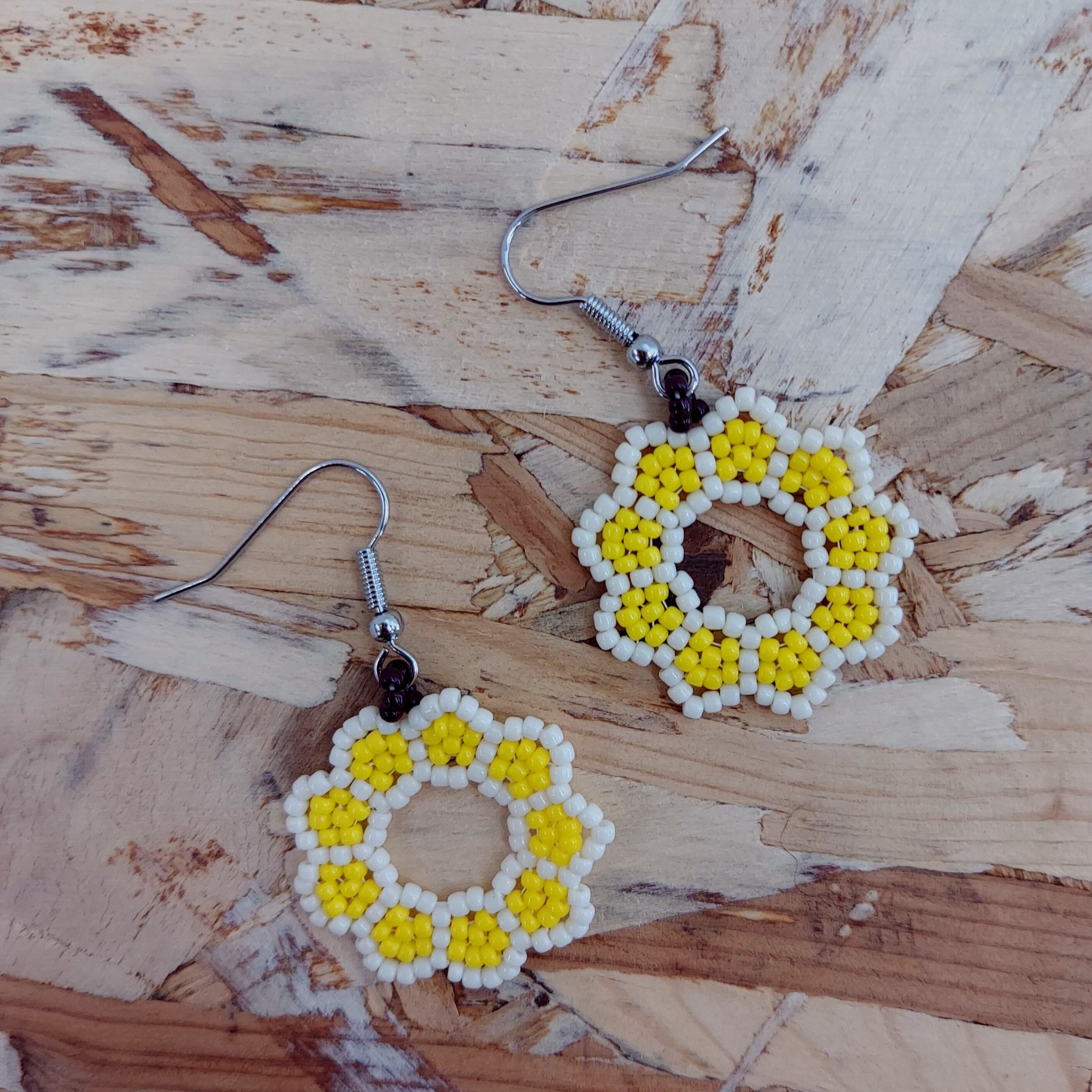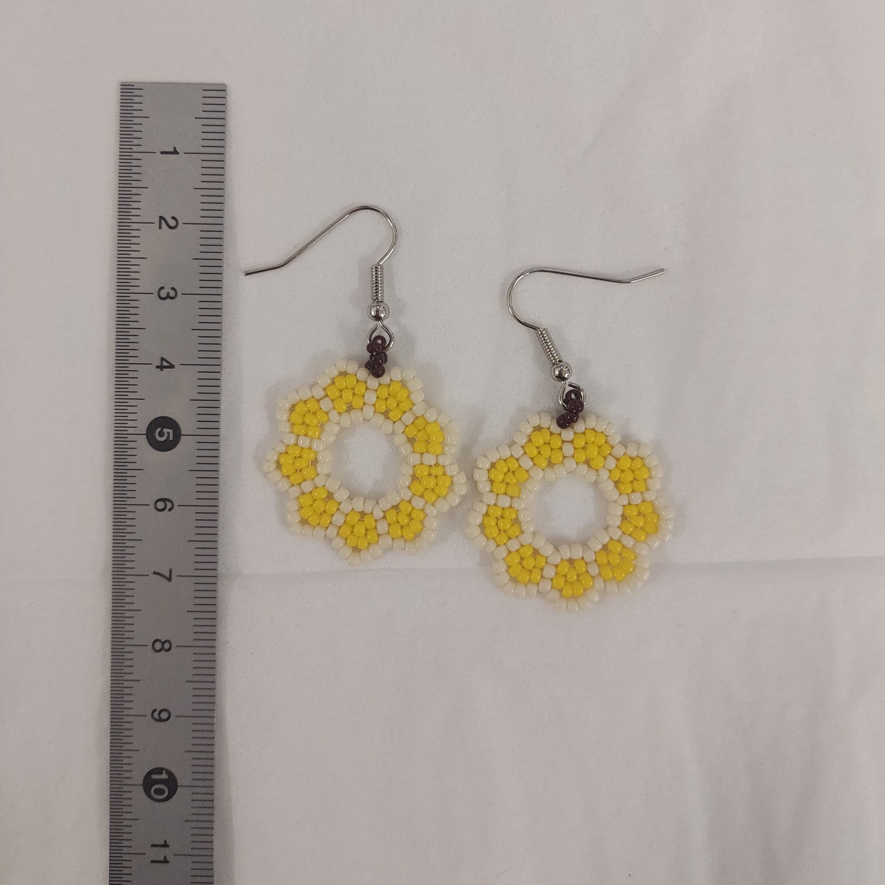 レモンを輪切りにしたみたいなお花みたいなピアスを作りました。