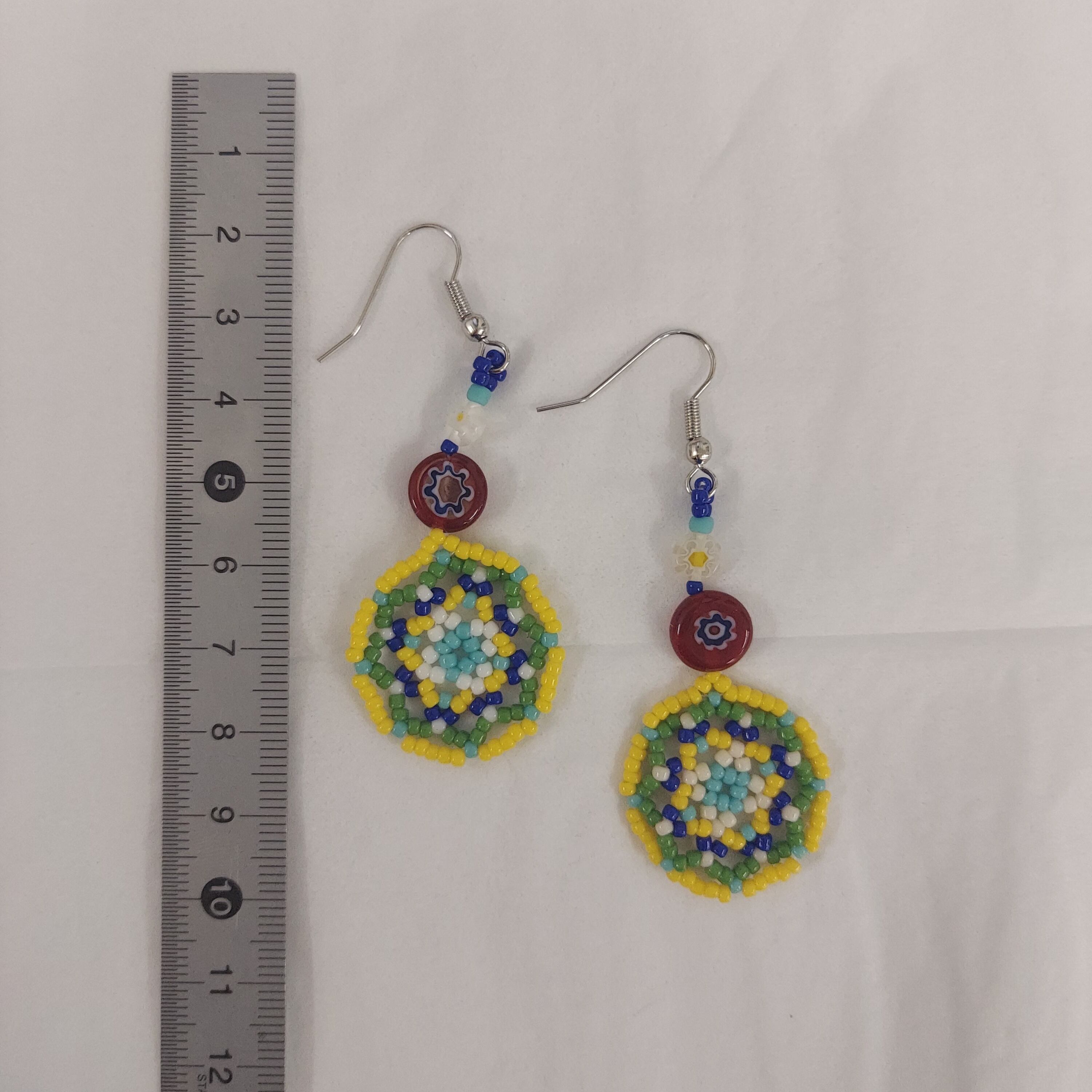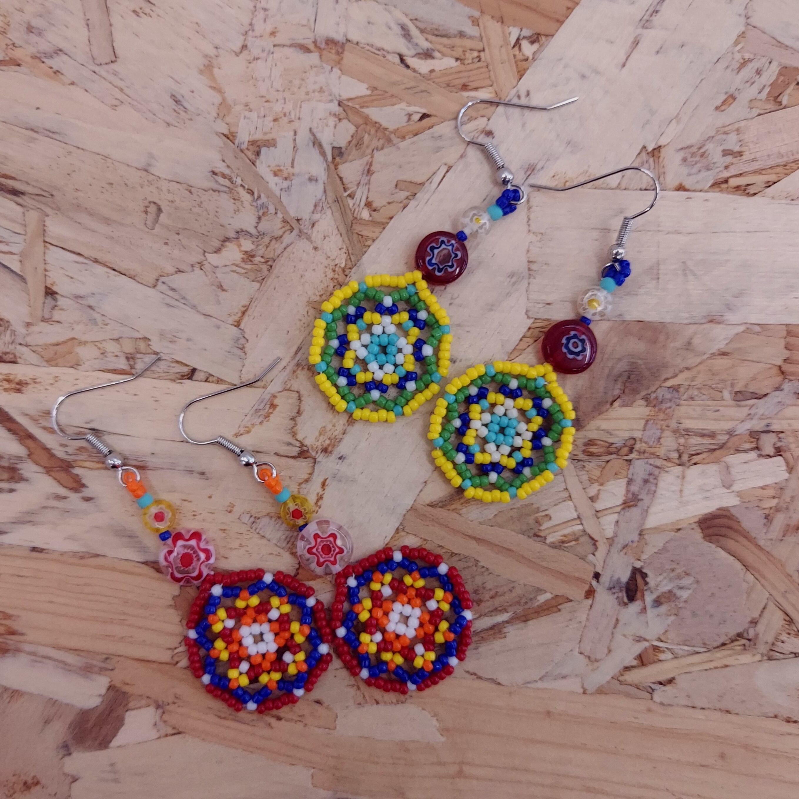 丸小ビーズとチェコビーズを組み合わせたピアスです。